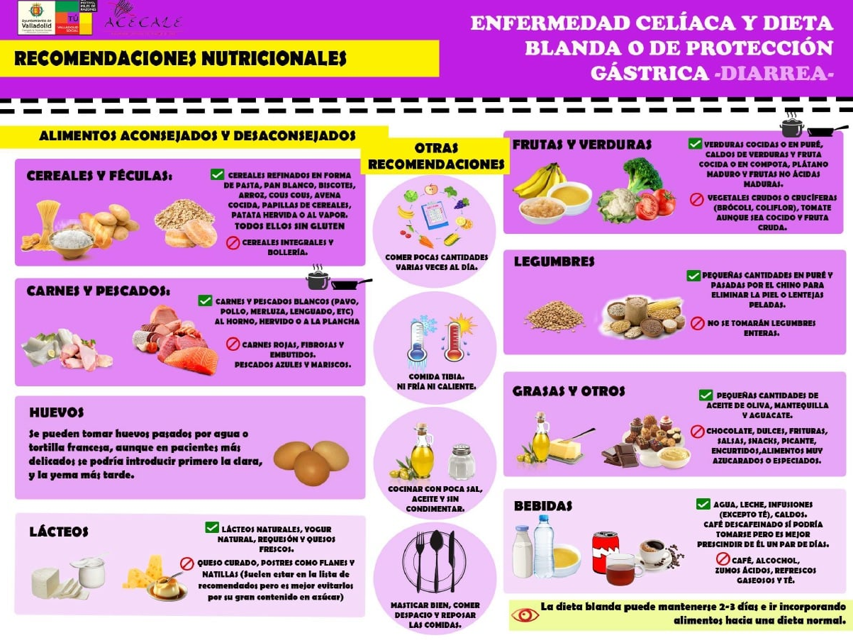 De la página de Actividades para mayores, que el Ayuntamiento de Valladolid tiene en Facebook, hoy hemos cogido estas tres diapositivas de ACECALE, Asociación de Celíacos de Castilla y León. En ellas encontraremos recomendaciones nutricionales para el tratamiento del colon irritable, la diarrea o el estreñimiento. (Para una mejor visualización haced clic sobre las diapositivas).